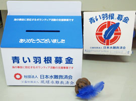 善意の青い羽根募金は、沖縄沿岸地域で発生する船舶海難や 海浜事故に対してのボランティア