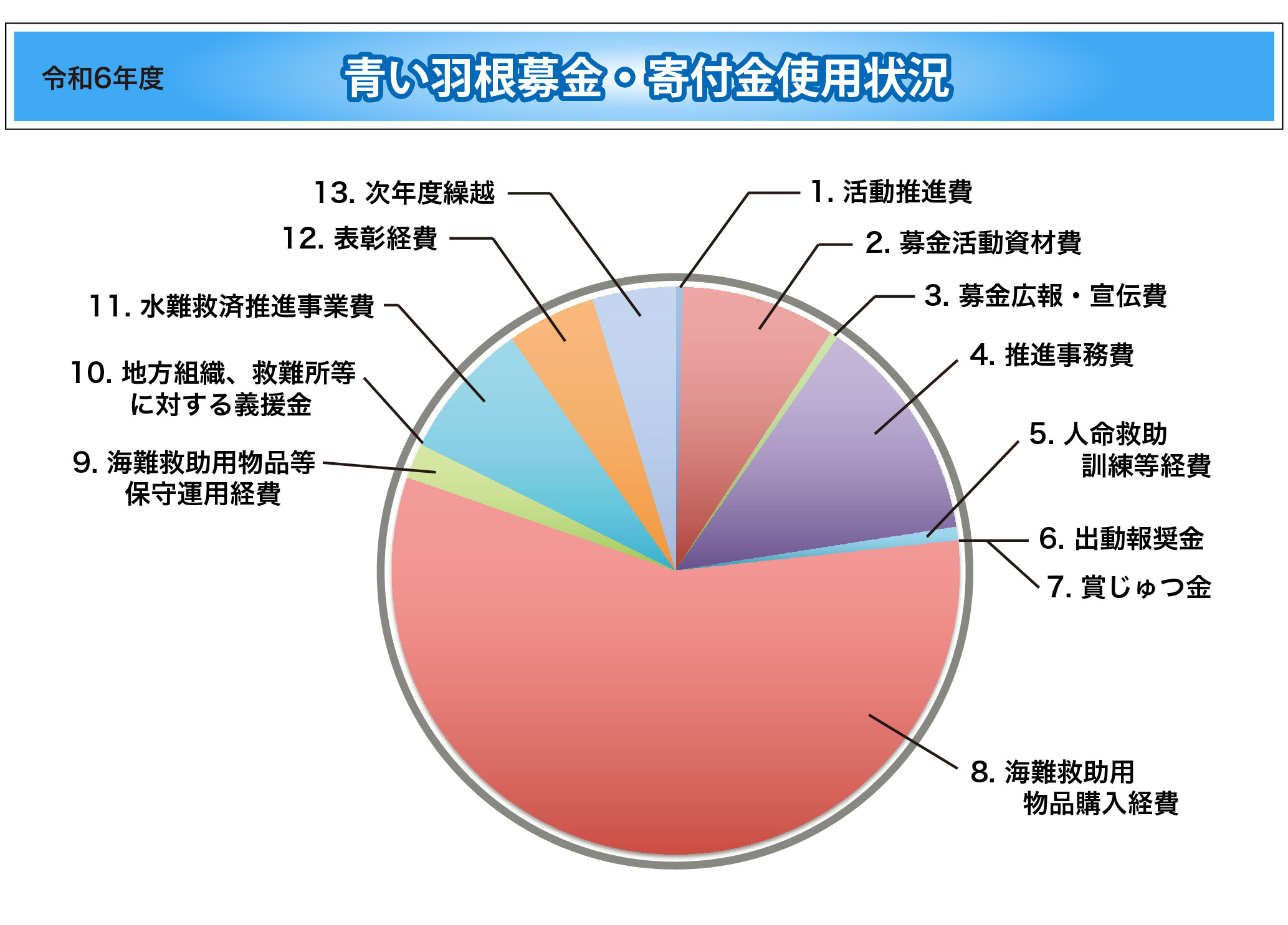 - 皆様の善意に寄せられる「青い羽根募金」は、この救助活動等の経